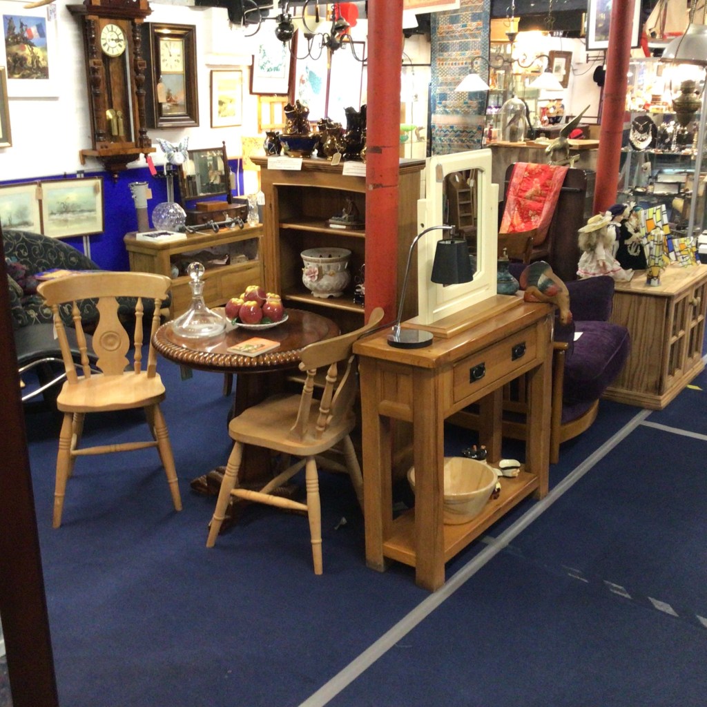Very attractive furniture plus homewares, curtains, lamps, art and watches pack these bays. There is a fabulous ercol armchair, clocks, an chez longe, an antique table too. Always a nice space to look around, updated November 2025.